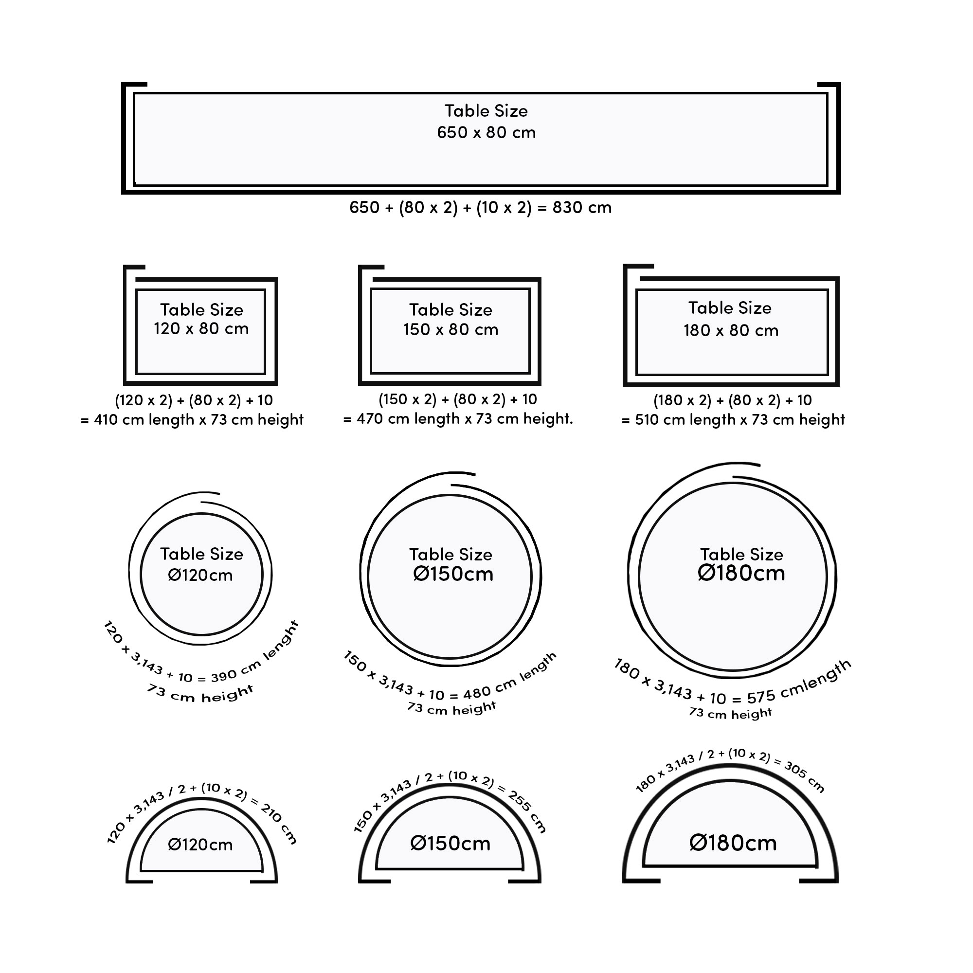 Offered in 3 standard diameter sizes, perfectly suited for tables with a height of 75 cm.