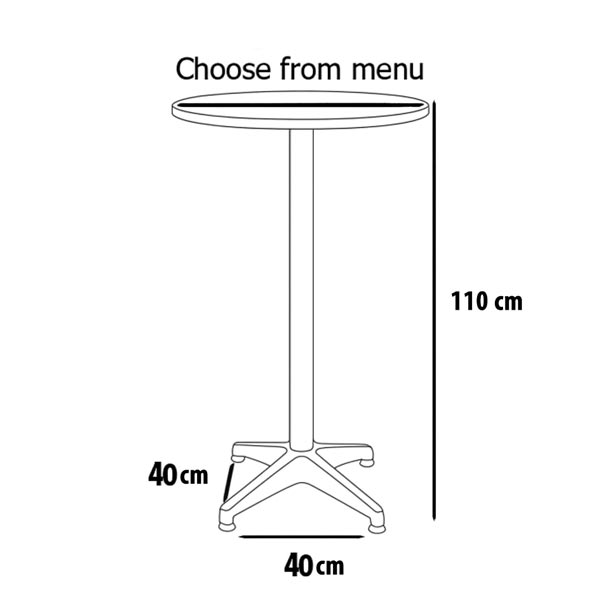 Bistro Table Diameter : Ø 95 cm Ø 80 cm Ø 90 cm Ø 85 cm Ø 75 cm Ø 70 cm Ø 65 cm Ø 60 cm
